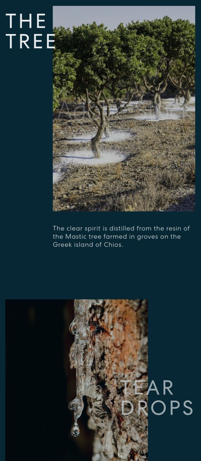 Axia is a new type of mastika spirit which is distilled from the sap of the mastic trees grown mainly on the Greek island of Chios.